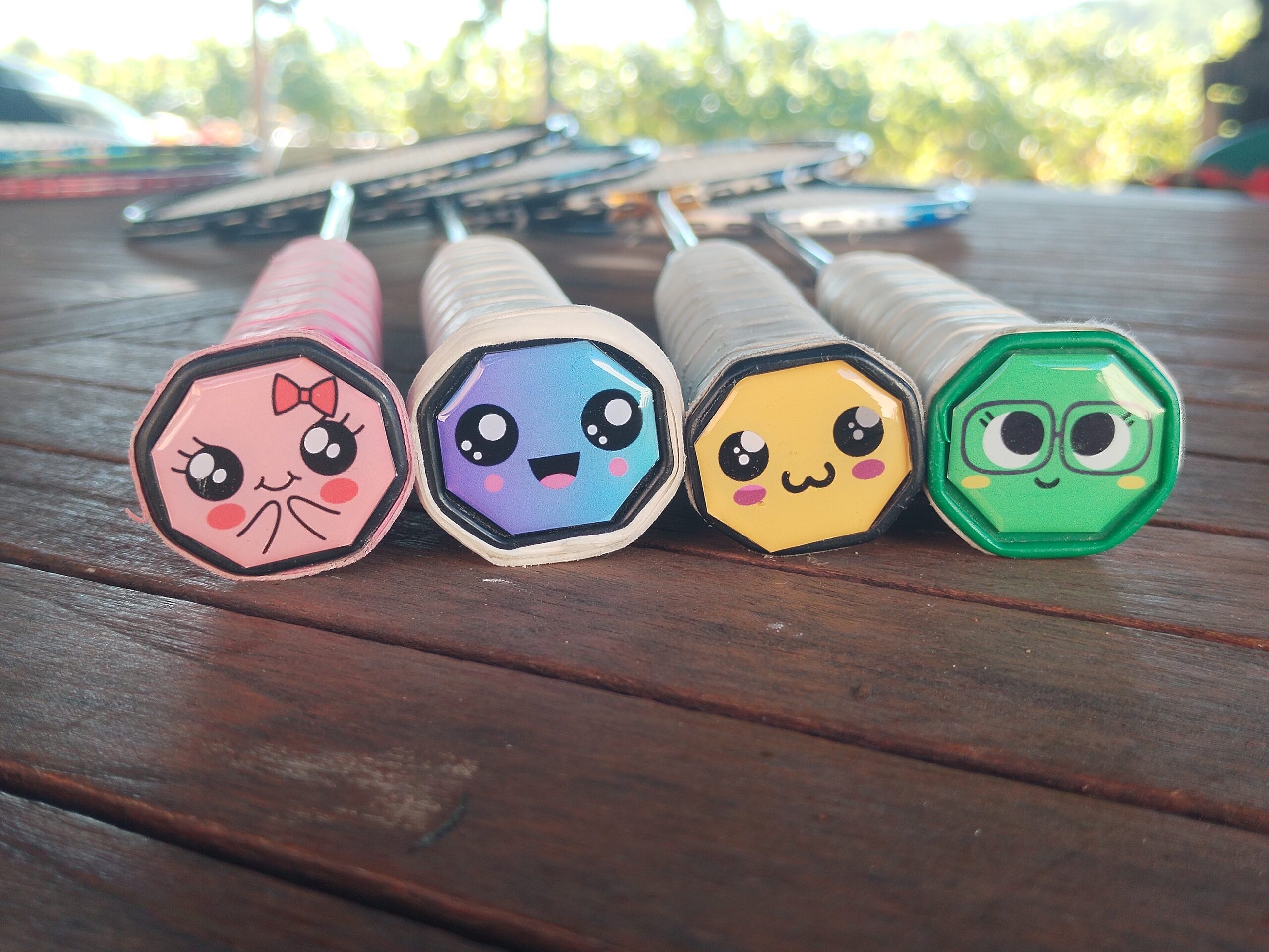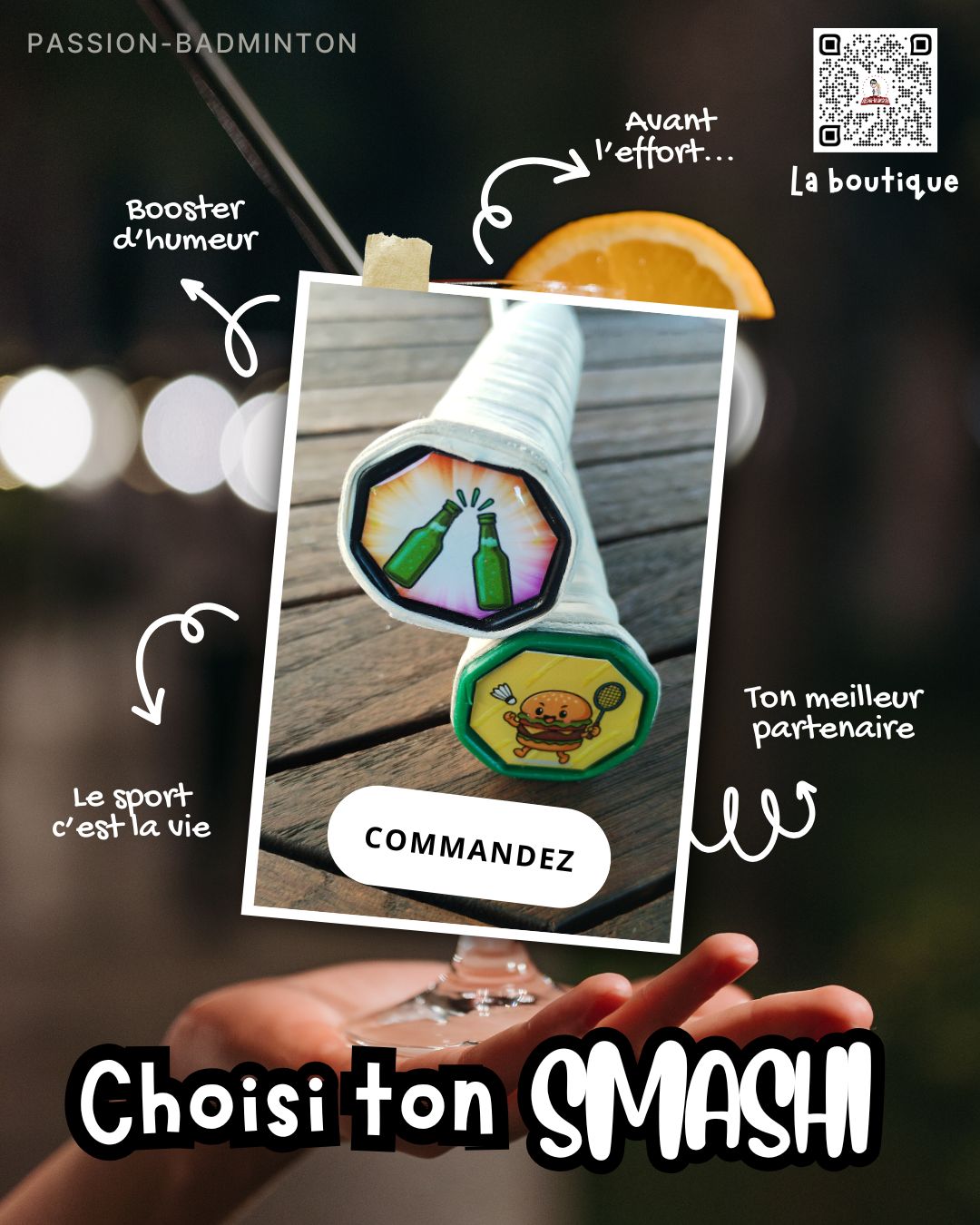 Stickers artisanaux résinés, funs et uniques, à coller sur le bas de ta raquette.