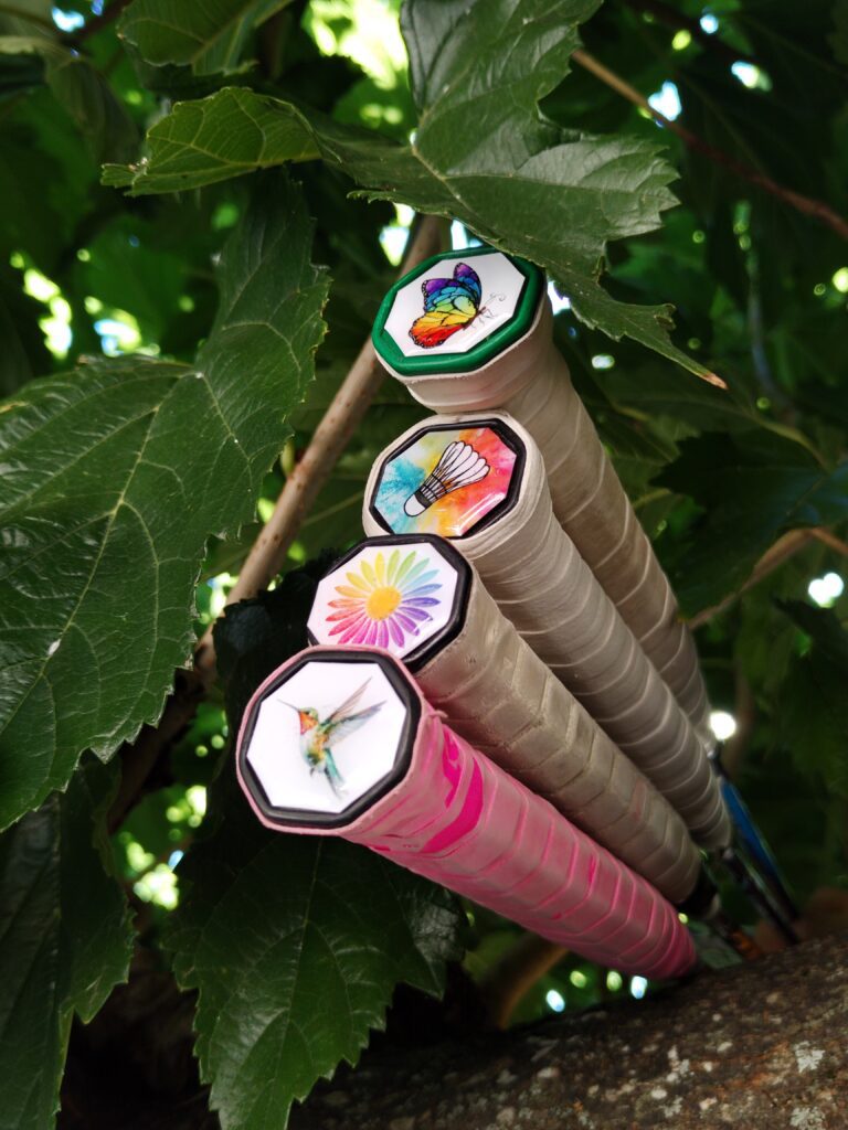 Stickers artisanaux résinés, funs et uniques, à coller sur le bas de ta raquette.